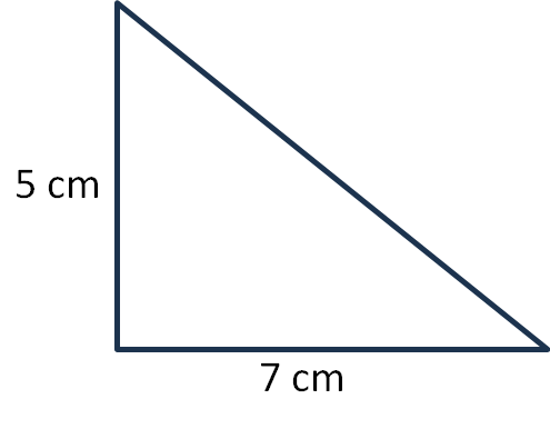 We know the 'a' and 'b' sides of this triangle so for the first step of finding the hypotenuse or the 'c' side, we just follow the formula and add 5 squared with 7 squared. But remember, by doing this we'll get the square of hypotenuse so the answer we get here isn't quite the final answer yet. To find the final answer, we have to take the square root of this answer, like so: